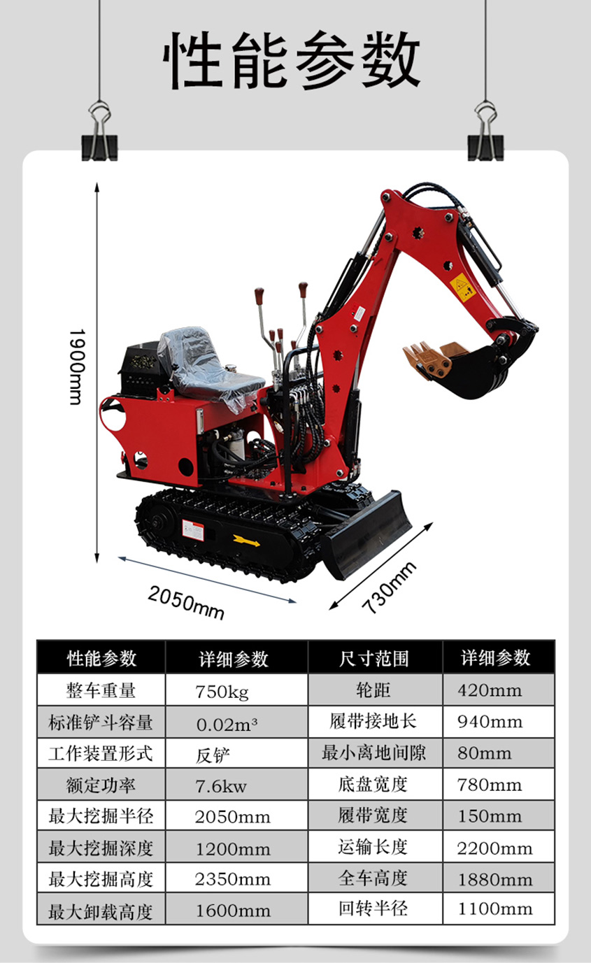整機重量:650kg斗容:0.02m3功率:7.6kW